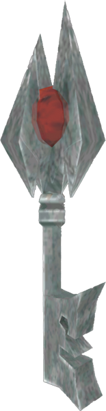 Boss Keys, also known as Big Keys, are recurring items in the Legend of Zelda series. These special keys are needed to enter the boss room of a dungeon, and, in some games, are needed to open a dungeon's big chest, in order to obtain the dungeon's item. Contrary to the other big prize of a dungeon guarded by a mini-boss, one must usually solve a puzzle or riddle rather than win a difficult fight to obtain this item. In some games, a Boss Key serves as a dungeon's "master key", and can unlock certain doors other than the door to the boss room. Boss Keys are typically "stored" on a game's Map Screen, but there are exceptions. Some games have other types of keys in place of Boss Keys to open the final area of a dungeon.