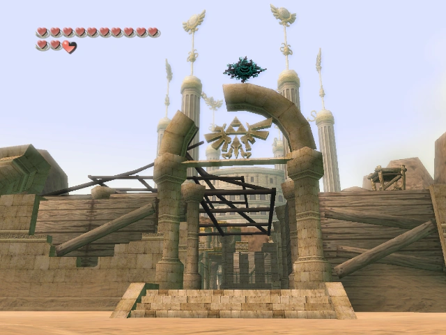 Also, both Midna and Lanayru claim that the Interlopers were chased into the Gerudo Desert prior to their banishment to the Twilight Realm. It is possible that they were the builders of the camp, their last home in the Light World. This, however, does not account for the Hylian crest adorning the entrance.