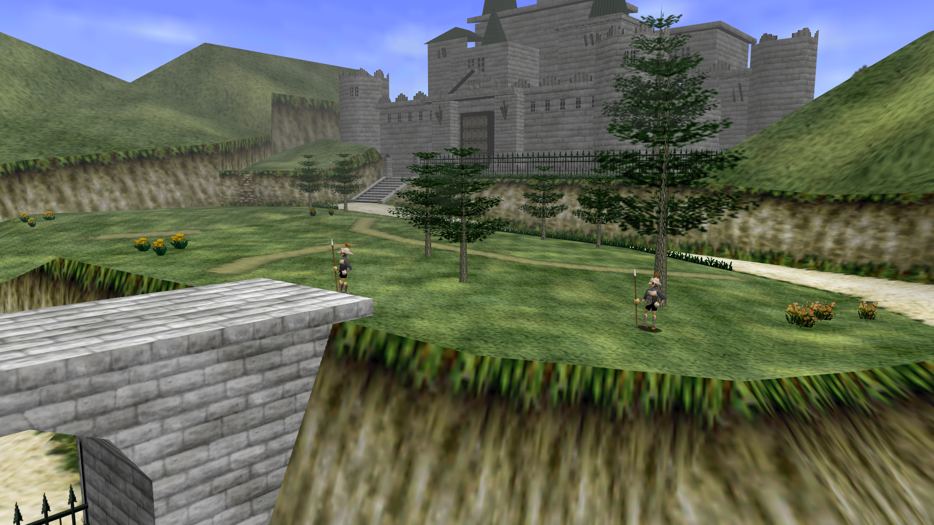The Castle Grounds is a location from The Legend of Zelda: Ocarina of Time. It is a large enclosed field situated near Hyrule Castle, and passage through the area is required in order to enter the castle itself. The area is patrolled by Hyrulean Soldiers, and stealth is required to pass through the area without being detected.