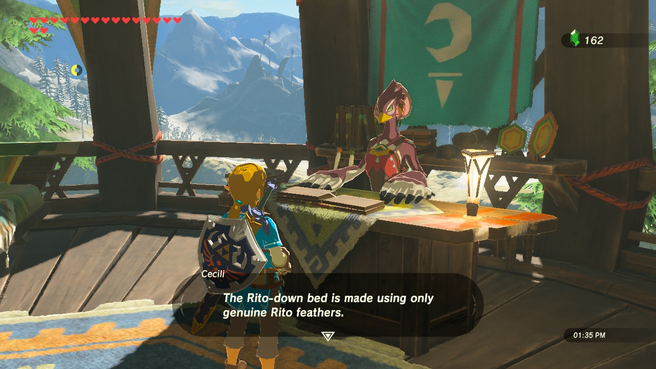 Cecili is a character in The Legend of Zelda: Breath of the Wild. She is the innkeeper at Swallow's Roost and will offer Link a special Rito-down bed to sleep in.