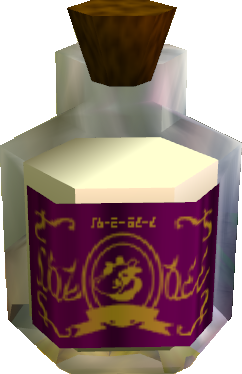 Chateau Romani (シャトー・ロマーニ Shatō Romāni?) is an item from The Legend of Zelda: Majora's Mask. It is a vintage Milk produced by the cows at Romani Ranch, and delivered exclusively to the Milk Bar in East Clock Town for wealthy members to enjoy. The drink itself is stored in containers such as bottles, and when consumed, it replenishes the drinker's health and also boosts magic stamina for three days, providing Link with an endless supply of magic until the restoration of the three-day cycle. It will also remove the jinx placed on Link when he is hit by a Blue Bubble.