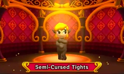 The Cursed Tights (also known as Semi-Cursed Tights) are an item from The Legend of Zelda: Tri Force Heroes. They are an obtainable outfit Link can equip, allowing him to dodge 50% of attacks; however, the attacks that hit do double damage.