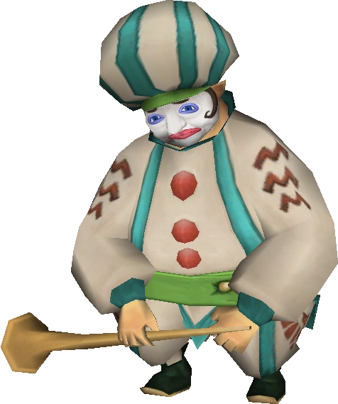 Dodoh is a character from The Legend of Zelda: Skyward Sword. He is the lone inhabitant of Fun Fun Island. Dodoh runs a mini-game called Dodoh's High Dive, where Link is launched into the air and attempts to earn Rupees by passing through score multipliers and landing on a small colored space on a huge spinning wheel.