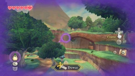 Dowsing is a skill from The Legend of Zelda: Skyward Sword. Taught to Link by Fi, dowsing allows Link to use the Goddess Sword or Master Sword to search for objects and characters. Dowsing is performed in first-person view; a small arrow around the purple crosshair points the way to the exact location of the target. As Link approaches his target, the speed and pitch of the beeping sound increases, the crosshair flashes more brightly, and grows larger.