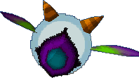 Eyeball Monsters are enemies from The Legend of Zelda: Phantom Hourglass. They are cloud-like creatures that have one eye and two horns. They are encountered while sailing and during the mini-boss battle with the Sky Whale. In the battle with the Sky Whale, they fly out of the creature's mouth and lunge at the S.S. Linebeck. Eyeball Monsters can be found in the northern and southeastern sectors of the World of the Ocean King. They always travel in packs. The leader of these packs is always red and, when killed, drops a Red Rupee.