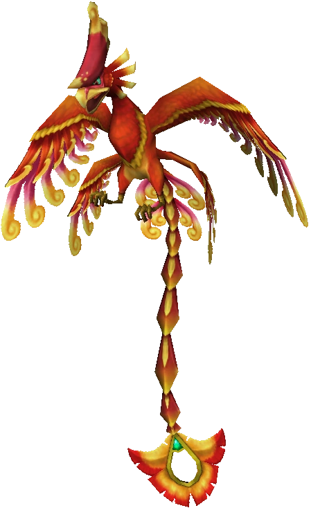- "This spirit bird is said to survive by eating flames. Due to its cautious nature, it can be difficult to approach. However, by catching and holding the bird's attention, some are able to successfully attack it. I suggest being wary of its curled tail."