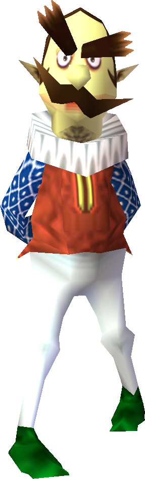 Gorman makes a brief appearance in the beginning when Link first arrives in Clock Town and tries to figure out what is happening. Gorman almost bumps into Link, but does not go into conversation and just keeps walking. He leaves Link confused because he thinks it was Ingo.