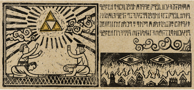 The creation of Hyrule by the three Golden Goddesses: Din, Nayru and Farore