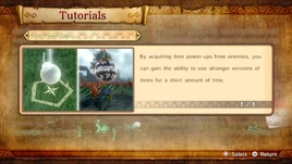 Item Power-Ups are item upgrades that appear in Hyrule Warriors. They are obtained from defeated enemies, Pots, via certain weapon skills, or during certain points of the story. The upgrade is usually temporary however its duration can be increased by crafting certain Assist Badges. There is also an Item Power-Up Apothecary Mixture that causes items to be permanently powered up for a single battle scenario, which costs 100 bronze Materials and 30,000 Rupees to create. There are four power ups in total.