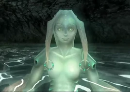 Iza's Assistant is a character from The Legend of Zelda: Twilight Princess. She is a Zora employed by Iza at the Boat Rental Cabin in the Upper Zora's River, presumably for returning the boat upstream after rides. Link first encounters her when he is aiding Iza by removing the boulders disturbing the flow of the river in Iza's Rapid Ride, and thus preventing her from maintaining her business. When Link approaches the second boulder, Iza's Assistant emerges from under the water and asks Link to help her remove the obstruction. Link must then shoot the barrier with a Bomb Arrow, which effectively destroys the boulder. At this point the Zora begins swimming down the river, and Link paddles behind her. When the two reach Lake Hylia, Iza's Assistant gives Link a Bomb Bag for his deeds, and returns to the Boat Rental Cabin.