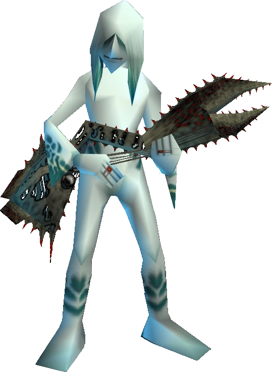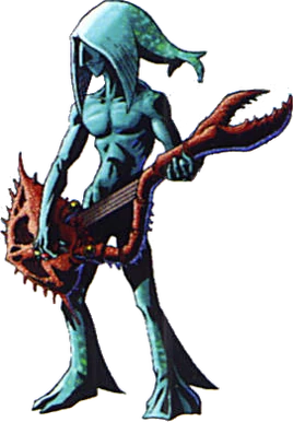 Japas is a character from The Legend of Zelda: Majora's Mask. He is a Zora residing in Zora Hall, who plays bass guitar for The Indigo-Go's. He is a laid back, relaxed fellow who is always up for a jam. Japas' long "hair" is most likely meant to give him the appearance of a grunge musician. Interestingly, the song that Japas plays on the bass guitar in his room is the Underworld music from The Legend of Zelda.