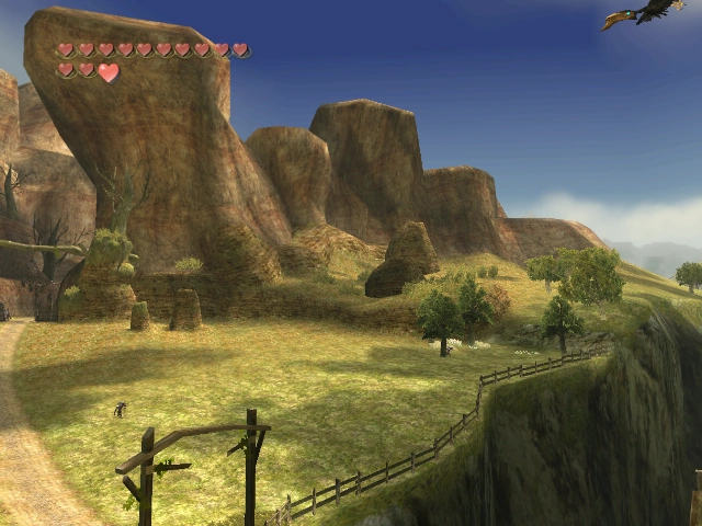 Kakariko Gorge is a location from The Legend of Zelda: Twilight Princess. It is a canyon connecting Hyrule Field with Kakariko Village. Many hidden secrets are present in Kakariko Gorge; a Piece of Heart can be reached only with the use of the Double Clawshots, another Piece of Heart can be snagged if Link uses the Gale Boomerang, a Lantern Cavern is hidden behind a boulder, and an Owl Statue can be found on a ledge in the southwestern corner.