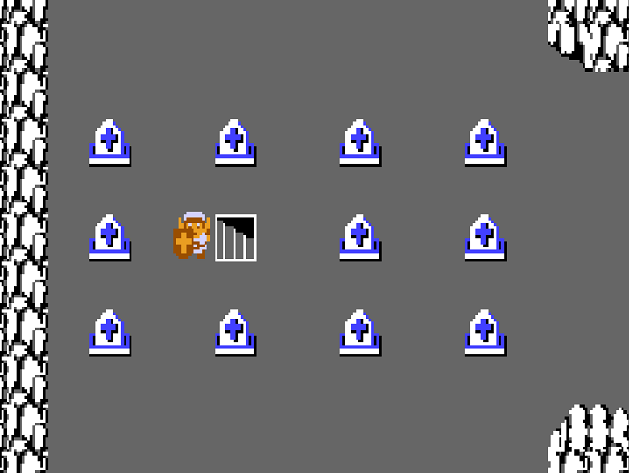 Level 6, in the Second Quest, is found in the Graveyard, in the central western section. To reveal the hidden entrance, Link must play the Recorder, which will cause one of the tombstones to vanish revealing a hidden staircase.