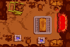 There are only two noticeable entrances to the mines: one on the northern wall and one to the west. Link first enters the cavern from the north.