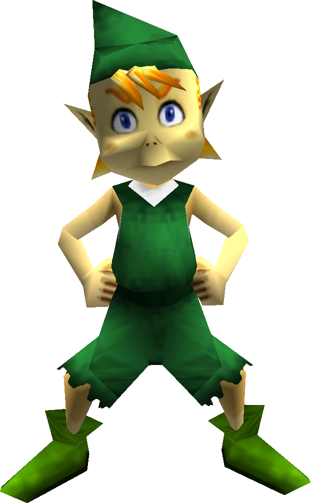 Mido is a character from The Legend of Zelda: Ocarina of Time. Mido, who has given himself the moniker "The Great Mido", considers himself the boss of the Kokiri, despite the fact that he can act quite childish and egotistical at times. He often makes other Kokiri do work for him, such as lifting stones and cutting grass. Despite this, he appears to be admired, or at the very least trusted by the other Kokiri; if one of them is scared by one of Link's masks, they say that they will tell Mido. Mido has a strong dislike for Link and will not accept him as one of the Kokiri because he does not have a fairy; thus, he does not understand why Link is the favorite of Saria and the Great Deku Tree.