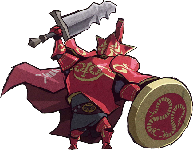 Mighty Darknuts (タートナック赤 Tātonakku Aka?, Red Tart Knuckle) are enemies from The Legend of Zelda: The Wind Waker. Stronger versions of regular Darknuts, they have a different appearance, with shining blood red and gold armor, some of them wearing a captain's helmet and/or a long red cape with a black tunic underneath. Mighty Darknuts have the same abilities and demonic canine appearance as normal Darknuts, though Mighty Darknuts are more powerful and take many more hits to defeat.
