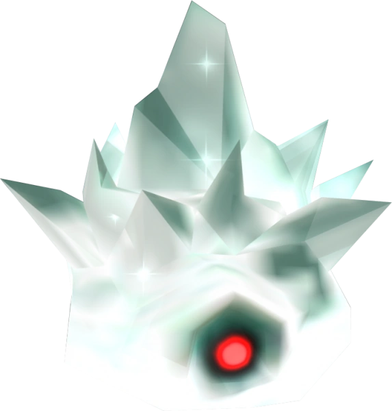 Mini Freezards are enemies from The Legend of Zelda: Twilight Princess. They are animate clumps of ice that appear frequently in cold regions, such as Snowpeak Ruins, or in the vicinity of other ice-based enemies in Cave of Ordeals. Mini Freezards slowly slide towards Link when he approaches and freeze him upon physical contact. In contrast to their fragile appearance, Mini Freezards are quite sturdy and can often take several hits to shatter. However, they move very slowly, except on ice, and feature minimal offensive capabilities. Additionally, they completely lack the ability to mount even the smallest step, which can be effectively utilized as safe vantage points from which to strike.