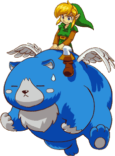 Moosh is a character from The Legend of Zelda: Oracle of Ages and The Legend of Zelda: Oracle of Seasons. He is a blue bear with the power of flight, allowing Link to cross sections of holes when riding him. However, he cannot fly over deep water without sinking. He is also capable of pounding the ground with great force, destroying nearby enemies. He can be called with Moosh's Flute.