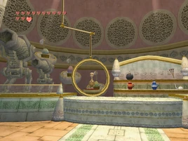 The Oocca Shop is a shop from The Legend of Zelda: Twilight Princess. It is located in the City in the Sky, and is run by an Oocca. It is the only shop in the series located inside of a dungeon. The Oocca Shop is filled with bizarre examples of Oocca technology, including a miniature Sky Cannon. The shopkeeper, when first addressed, speaks only in the Oocca Language. When it realizes Link is a Hylian, it switches to the Hylian Language. The shopkeeper will also sell Link items even while he is in his Wolf form. The store is stocked with items such as Bombs and Arrows, which the shopkeeper ordered before realizing they could not be used by Oocca.