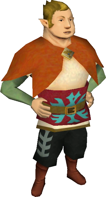 Later in the game, if Link speaks to him, he mentions how he has not seen Groose, Cawlin, and Stritch around town lately, and says how their defeat from the Wing Ceremony must have made them stop playing around and get serious.
