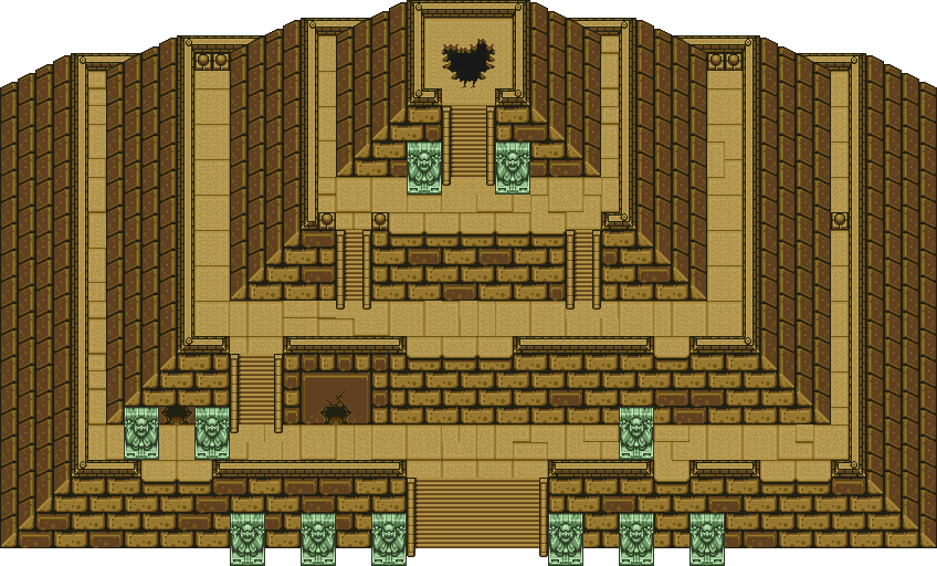 The Pyramid is a location from The Legend of Zelda: A Link to the Past. Located directly in the center of the Dark World, it is the equivalent of Hyrule Castle in the Light World. Although the Pyramid's external size is considerable, arguably little of what it contains is seen. On the exterior area of the Pyramid is a Weak Wall, which can only be broken with Super Bombs. Behind the wall is a Mysterious Pond, wherein is found the Great Fairy who bestows upon Link the Silver Arrows needed to defeat Ganon. Additionally, it contains the room in which Link battles Ganon, a room underneath the battle ground that contains a Telepathic Tile, which has an exit that leads outside, and the chamber of the Triforce. In the Game Boy Advance port, the Pyramid also holds the Palace of the Four Sword.