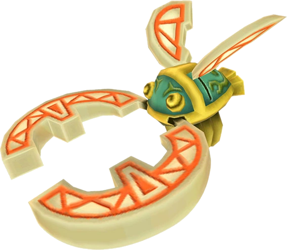 The Quick Beetle is an item from The Legend of Zelda: Skyward Sword. It is an upgrade to the Hook Beetle available at the Scrap Shop in the Bazaar. As its name implies, it travels faster than the Hook Beetle, giving Link more time to maneuver it. The player can press and hold the A button to speed up the Quick Beetle's flight, increasing its speed to twice that of the Hook Beetle. Its wings are shaped differently than the wings of the Hook Beetle and are now the same colors as the pincers.