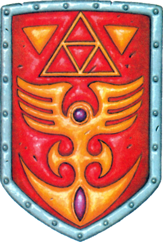 The Red Shield is a shield from The Legend of Zelda: A Link to the Past. An improved version of the Fighter's Shield, Link can purchase it from one of the various shops in the Dark World or obtain it by throwing the Fighter's Shield into the Mysterious Pond behind the Waterfall of Wishing. It is bigger than the Fighter's Shield and can block fireballs, but not beams. It is replaced by the Mirror Shield later in the game. Link can lose the Red Shield if he is attacked by a Like Like or a Pikit.
