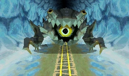 During the fight with the Rocktite in the Snow Sanctuary's tunnel, the goal is simply to hit its eye with the cannon. While chasing the Spirit Train, it will attempt to close in on the train to cause damage. Once it has been hit with the cannon several times, it will flee from view into the shadows of the cave, resurfacing to attack a short while later. Once it has sustained enough damage, it is defeated.