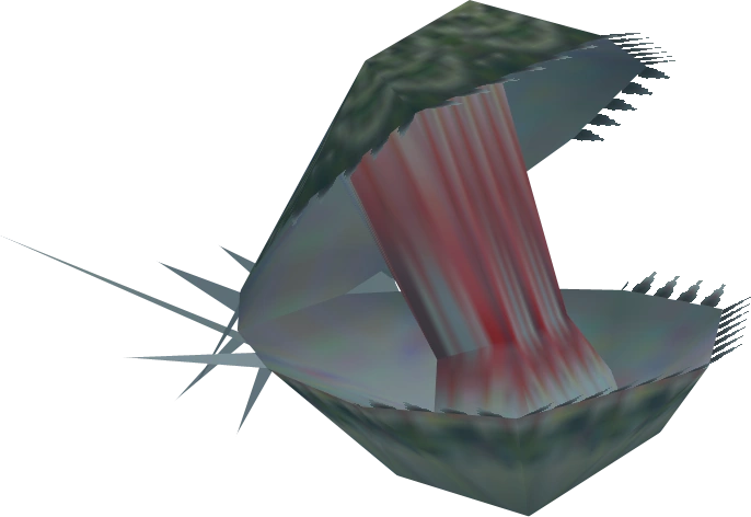 In Ocarina of Time, Shell Blades are found in the Water Temple and in the Gerudo's Training Ground; they are only ever found underwater. When they spot Link, they open their shells wide (leaving themselves open to attack by the Hookshot, which can kill them in one hit) before clamping shut, spinning round, and dashing at Link, repeatedly slicing their back spikes through the water before sinking back to the ground.