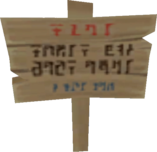 Signs reveal what is up ahead, as well as info about where Link currently is. Signs in this game come in two varieties. Signs found in caves and dungeons are commonly made of stone, while signs in the overworld are primarily wooden. Like its predecessors, the wooden sign can be cut in half, but it cannot be fixed until Link leaves the area and comes back to it.
