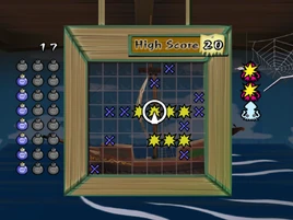 Sinking Ships is a mini-game from The Legend of Zelda: The Wind Waker. Run by Salvatore on Windfall Island, the game itself is very similar to "Battleship", but the ships are replaced with Big Octos and Link lacks a fleet and opponent to attack him. Link is given 24 shots to sink all three Big Octos; one takes up four squares, one takes up three, and the third takes up two. All of these are placed randomly each time the game is played. The fee to play is 10 Rupees per game.