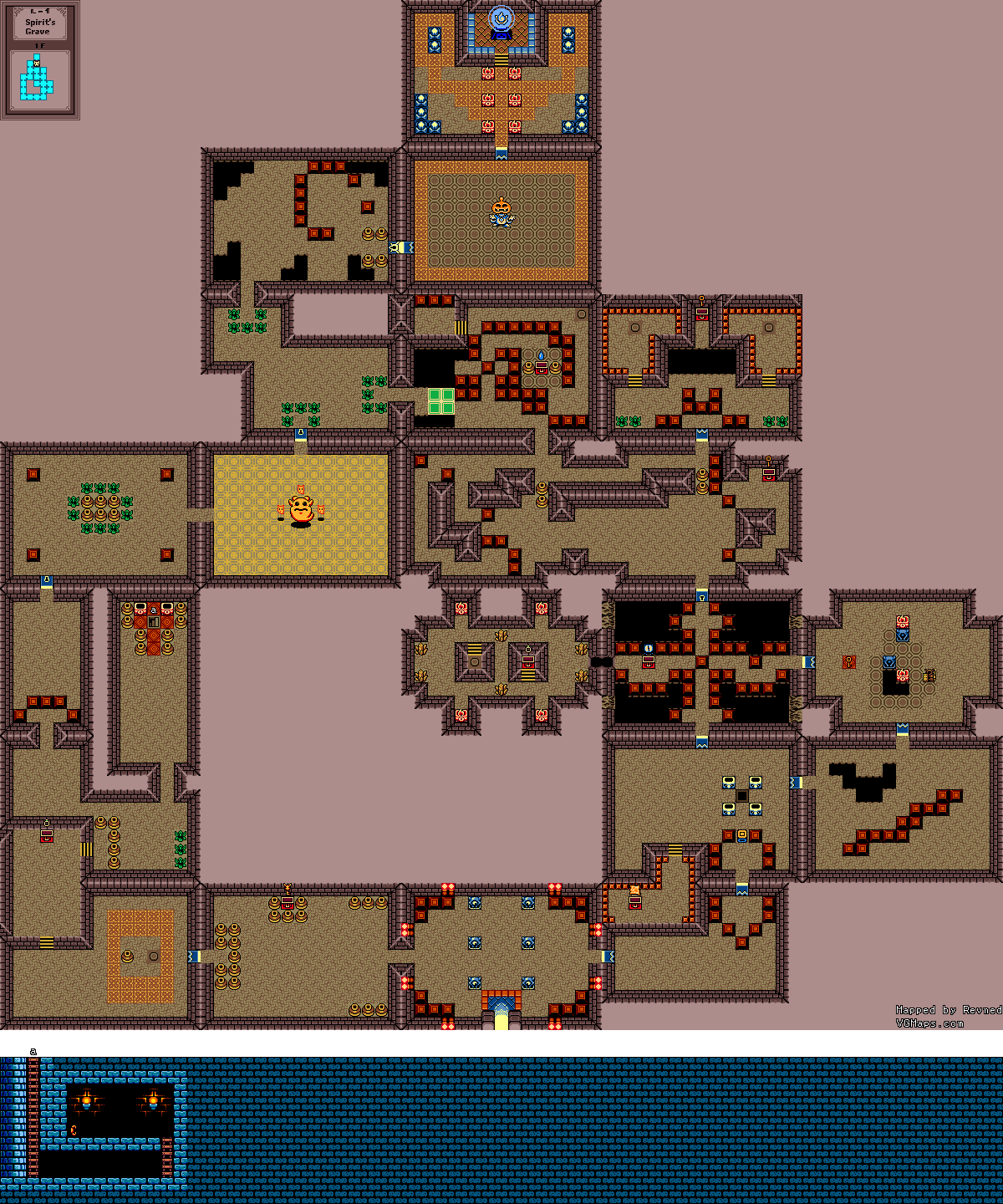 The Spirit's Grave is the first dungeon in The Legend of Zelda: Oracle of Ages. It is located within a large mausoleum in Yoll Graveyard, a place which can only be accessed in the Present. The layout of the dungeon is similar in appearance to a gravestone. Interestingly, it is found approximately where the Ancient Tomb, the eighth dungeon, is located in the Past.