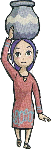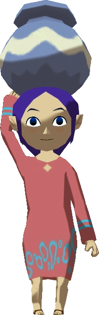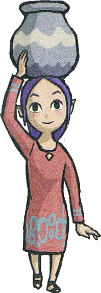 If Link ever breaks one of the jars that Sue-Belle carries on her head, she remarks about how terrible it is and makes Link pay 10 Rupees. Linda, who lives on Windfall Island, is a friend of Sue-Belle's, and tells Link that Sue-Belle sent her the dress she is wearing. She also brags about her friend's ability to carry pots on her head.