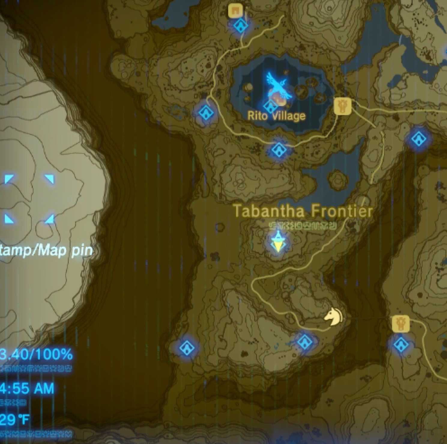 As it is located in the far north, Tabantha has temperatures ranging from mildly cool to frigid. The most common path to take has to do with crossing the Tabantha Great Bridge from Hyrule Ridge. The path is long and treacherous, with Guardian Skywatchers patrolling the first part, a Rare Stone Talus blocking the trail, and multiple camps of mixed monsters, some carrying Rito Weapons. The area is grassy, and one of the few places where you can harvest Tabantha Wheat (Hot-Footed Frogs are also common in the grass). Being the home of the Rito, there are large gusts of wind all around, and the windy climate hinders Paraglider transportation.
