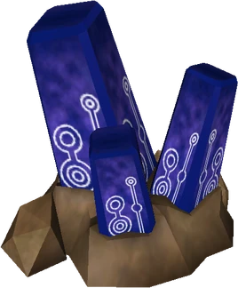Timeshift Stones are objects from The Legend of Zelda: Skyward Sword. They are purple, crystalline stones found in various areas of the Lanayru Desert; when struck, Timeshift Stones cause a temporal shift within an enclosed, circular area, allowing everything to appear as it did in that same exact spot hundreds of years prior. This allows objects such as Ancient Robots and Technoblins to appear, allows Mine Carts to be interacted with once again, causes sand-covered areas to appear the way they used to be before being buried under layers of sand, and allows Ancient Flowers to be found once again. Timeshift Stones located within temporal shifts glow with a clear blue color instead. Only one Timeshift Stone may be activated at a time; when a new stone is struck, the previous one will automatically become dormant.