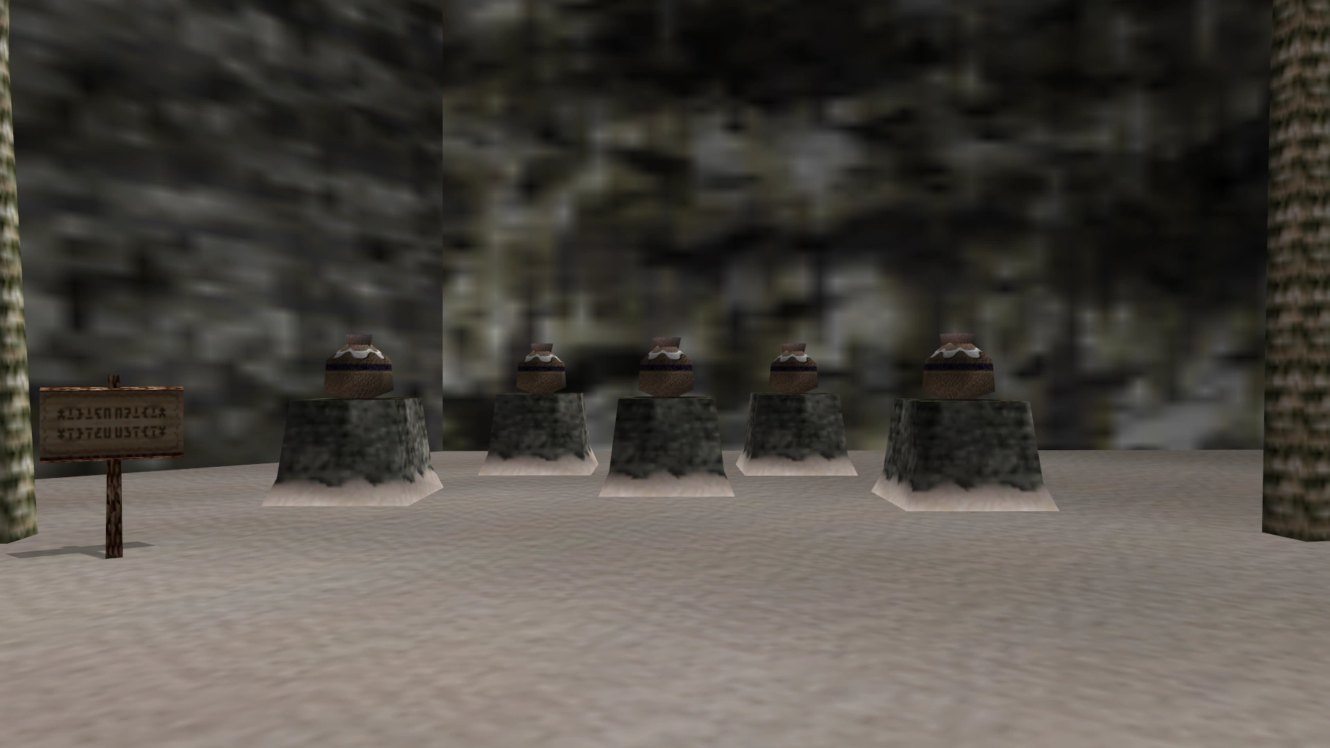 The Zora Game Site is a location from The Legend of Zelda: Majora's Mask. Located on the Zora Hall Coast, it serves as the location for the Zora Game run by two Zora. The game platform itself consists of five pillars with pots on top of them, under the shade of some palm trees.